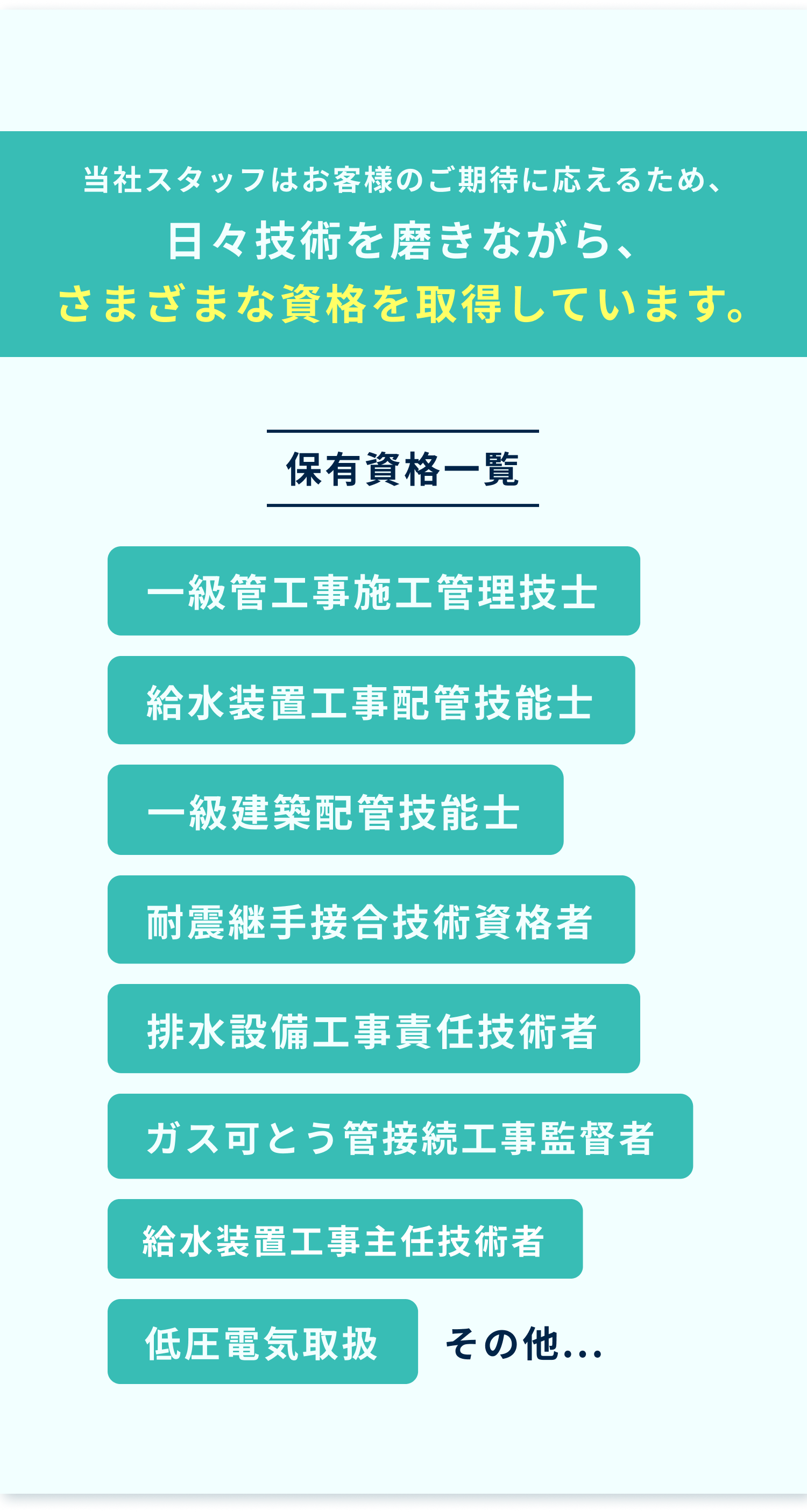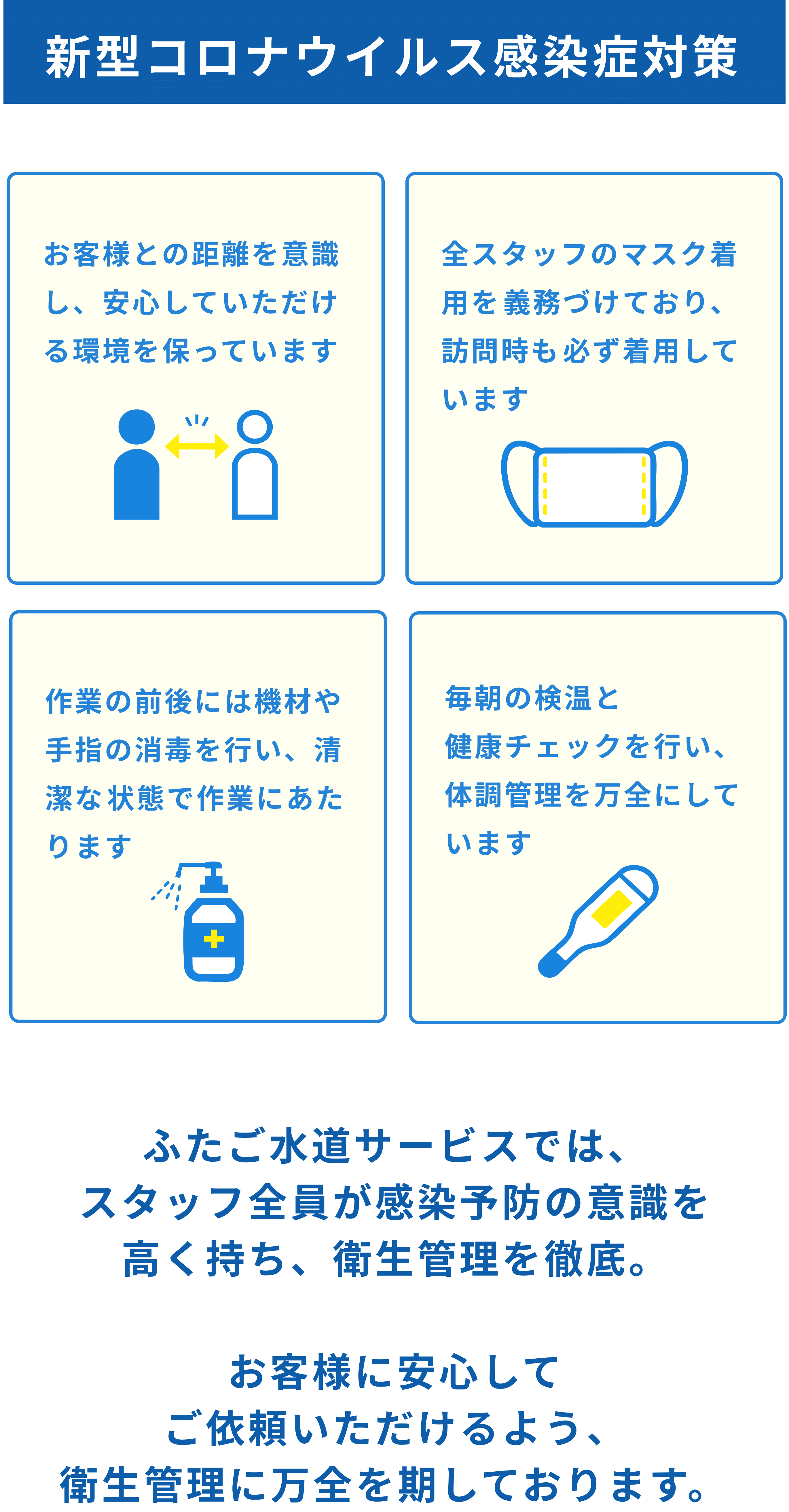 ふたご水道サービスでは専門知識と資格を持つ技術者が在籍し、状況に応じた確実な施工をご提供します。水まわり設備の工事・更新・点検をご検討中の方は、どうぞお気軽にご相談ください。