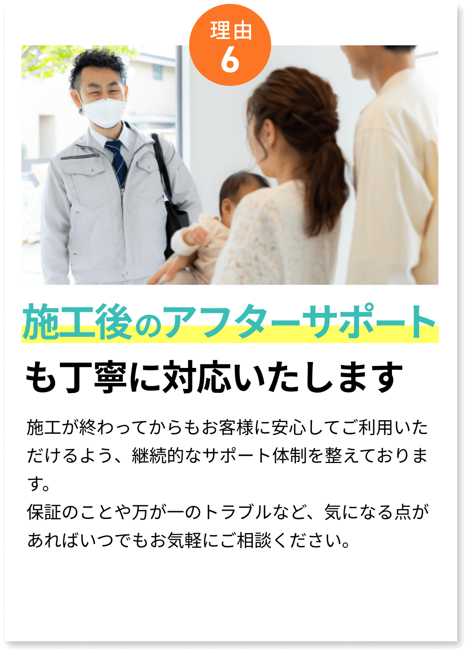 曖昧な説明やその場しのぎの対応には要注意。不安な点は納得できるまで質問し、丁寧に答えてくれる業者をを選びましょう